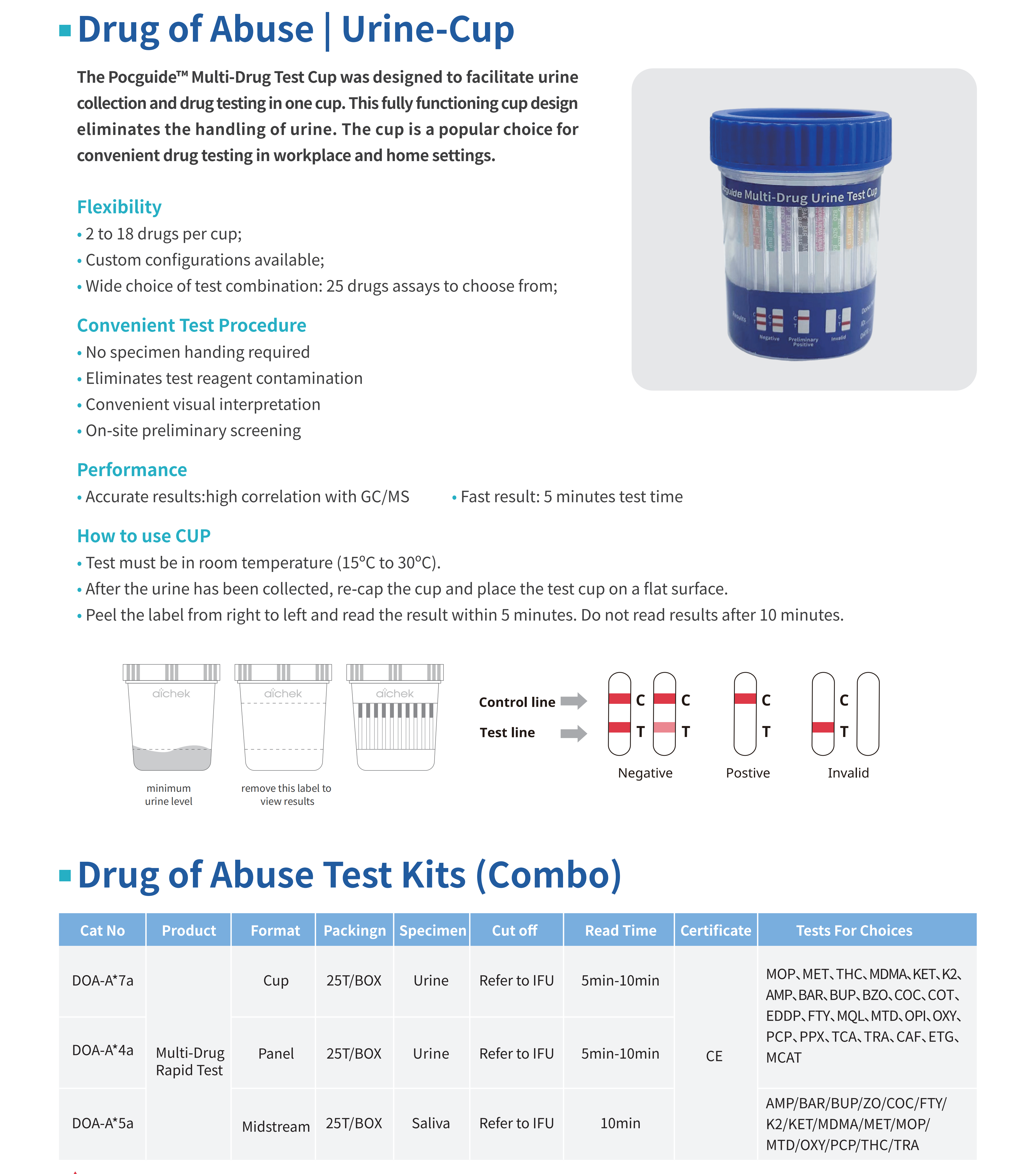 Integrated Testing Design: This testing cup integrates multiple testing points into a single sample container, allowing for screening of multiple drug abuse tests with a single urine sample, eliminating the need for repackaging and secondary operations.